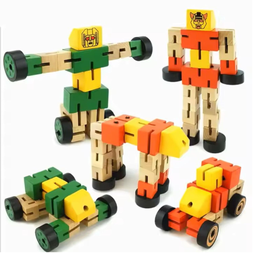 Wooden Transforming Robot & Vehicle Toy | Fun Flexible Interactive Motor Skills Toy for Kids Boys, Girls Age 2-5 | Best Birthday Return Gifts | Sensory Toys and Shape Changing | Travel Essentials